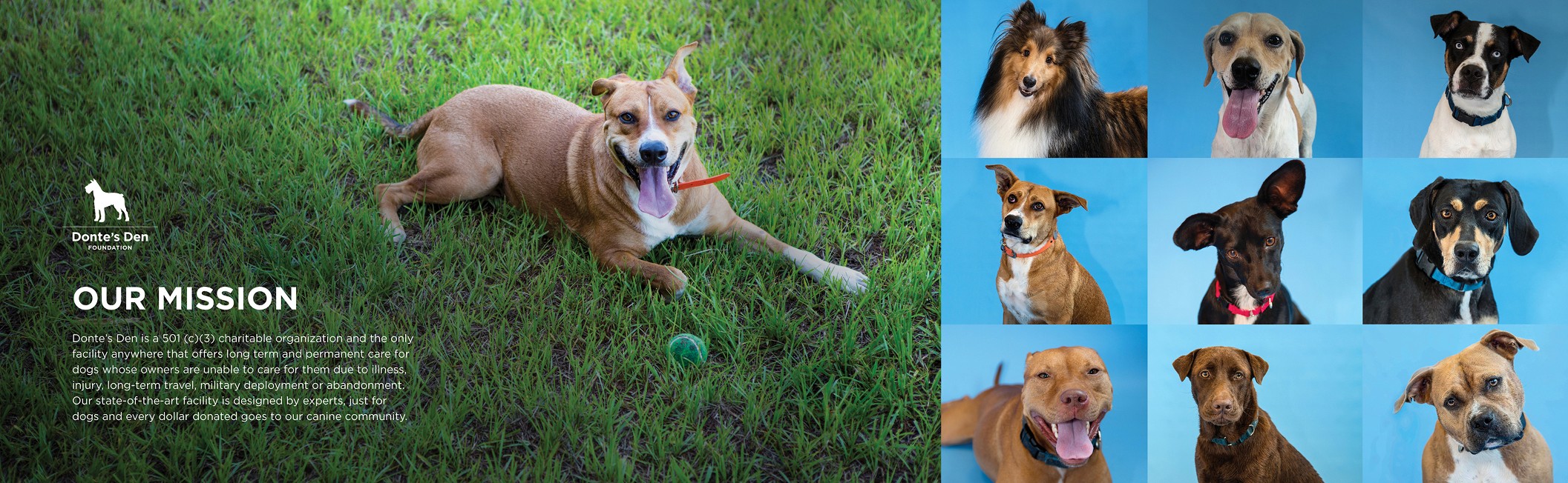From brand strategy to promoting services to encouraging donations, the rebrand for this non-profit rescue and rehab haven does it all with close up portraits of hilarious dogs and quirky catchphrases.