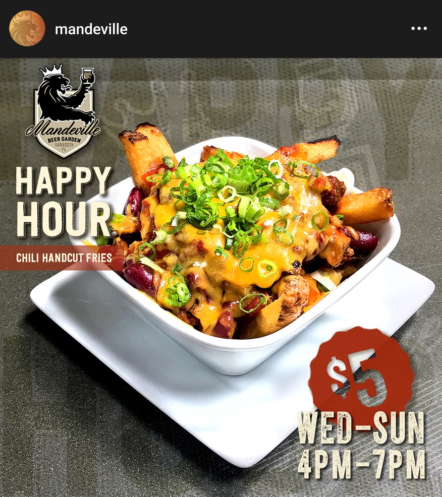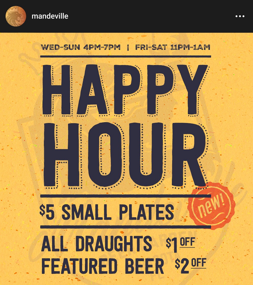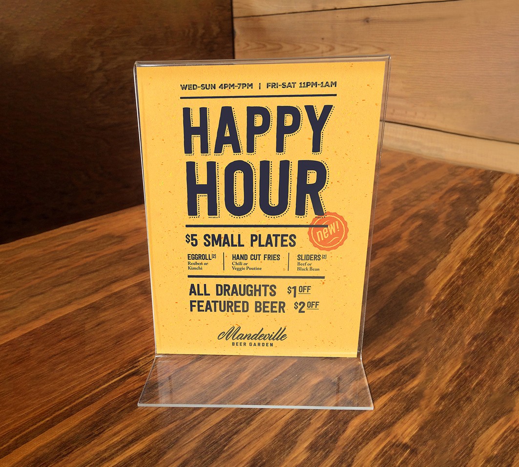 We worked closely with Mandeville to develop the happy hour small plates menu. This menu was featured in an ongoing social media campaign and became a permanent fixture.