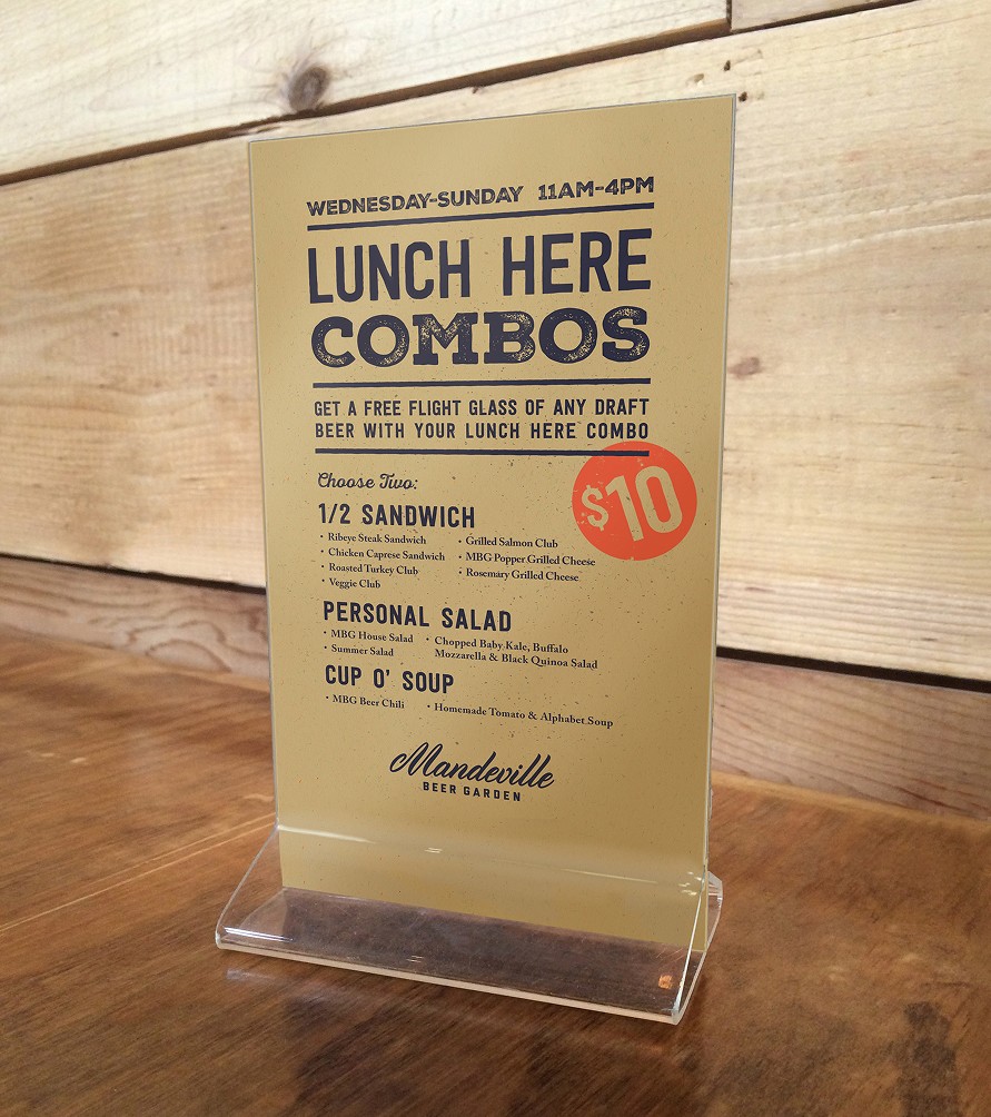 Additionally, we helped develop a lunch combo menu with soup or salad, sandwich and a free flight of any beer.