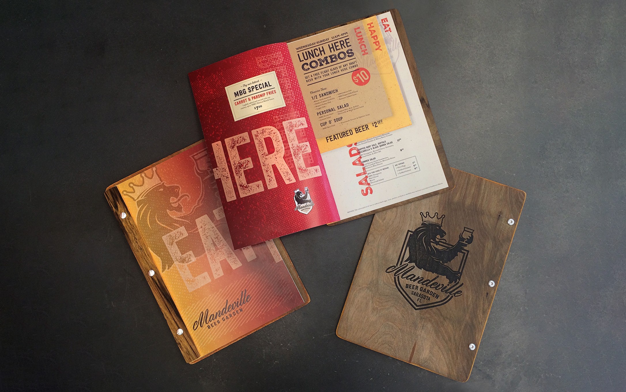 The casual enjoyment of good food, good beer, and fun times with friends is interpreted into a retro vibe in every detail of the Mandeville brand design. A bit of nostalgia, a bit of texture, a bit of cheekiness, and a whole lot of warmth.