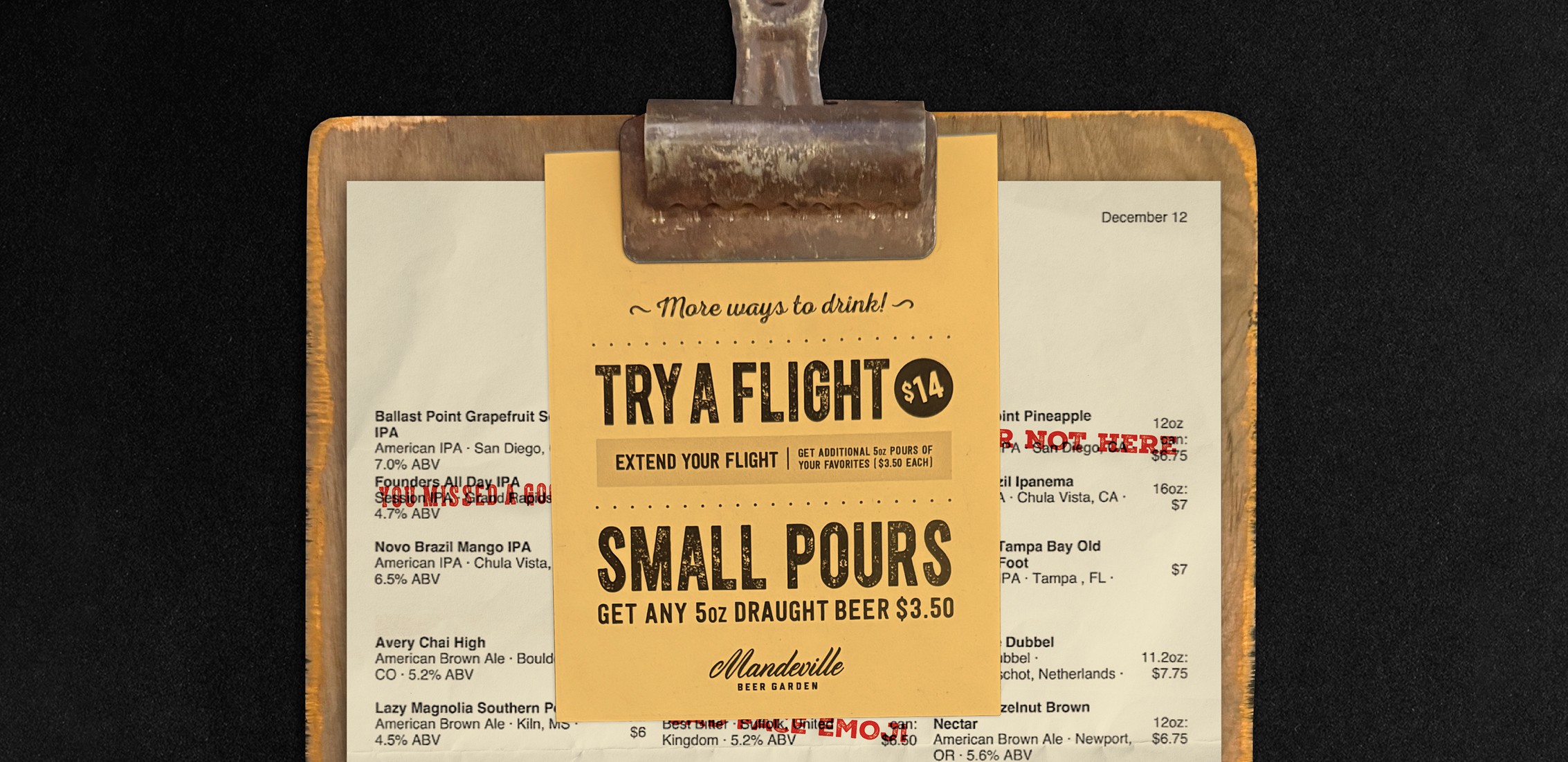 Mandeville had a huge selection of carefully curated beers, but they didn’t have a way to explore and sample without buying a full pint.