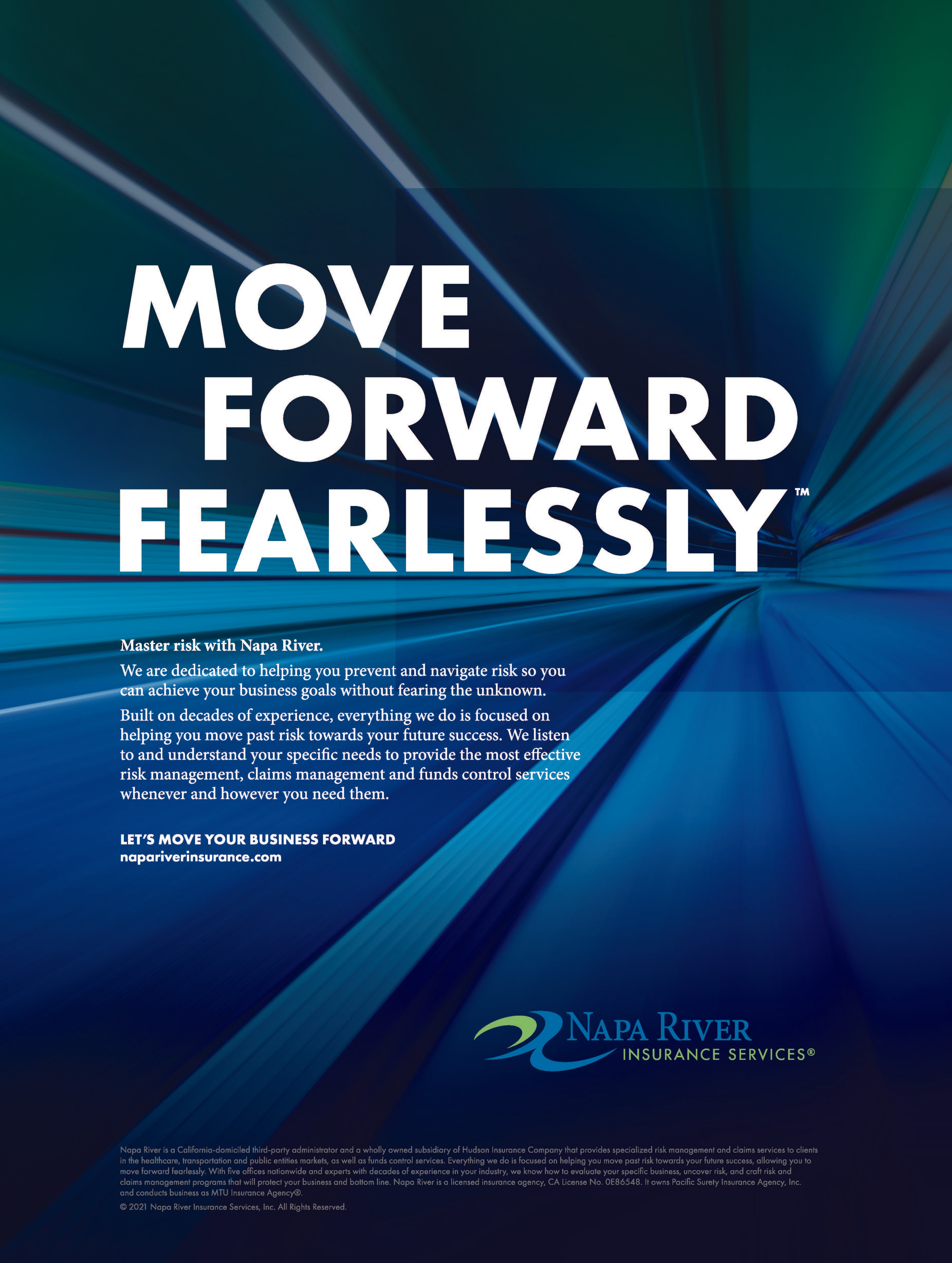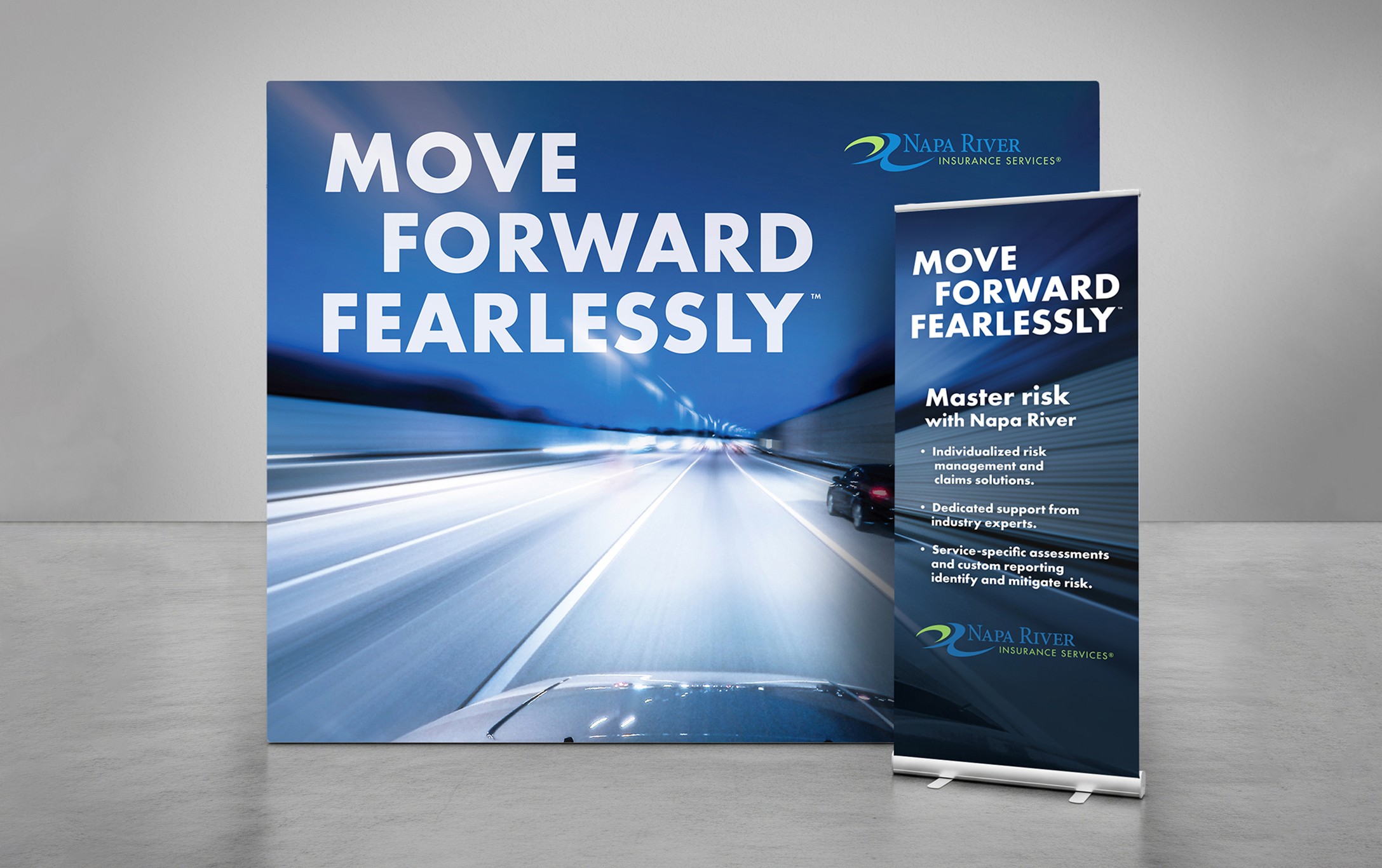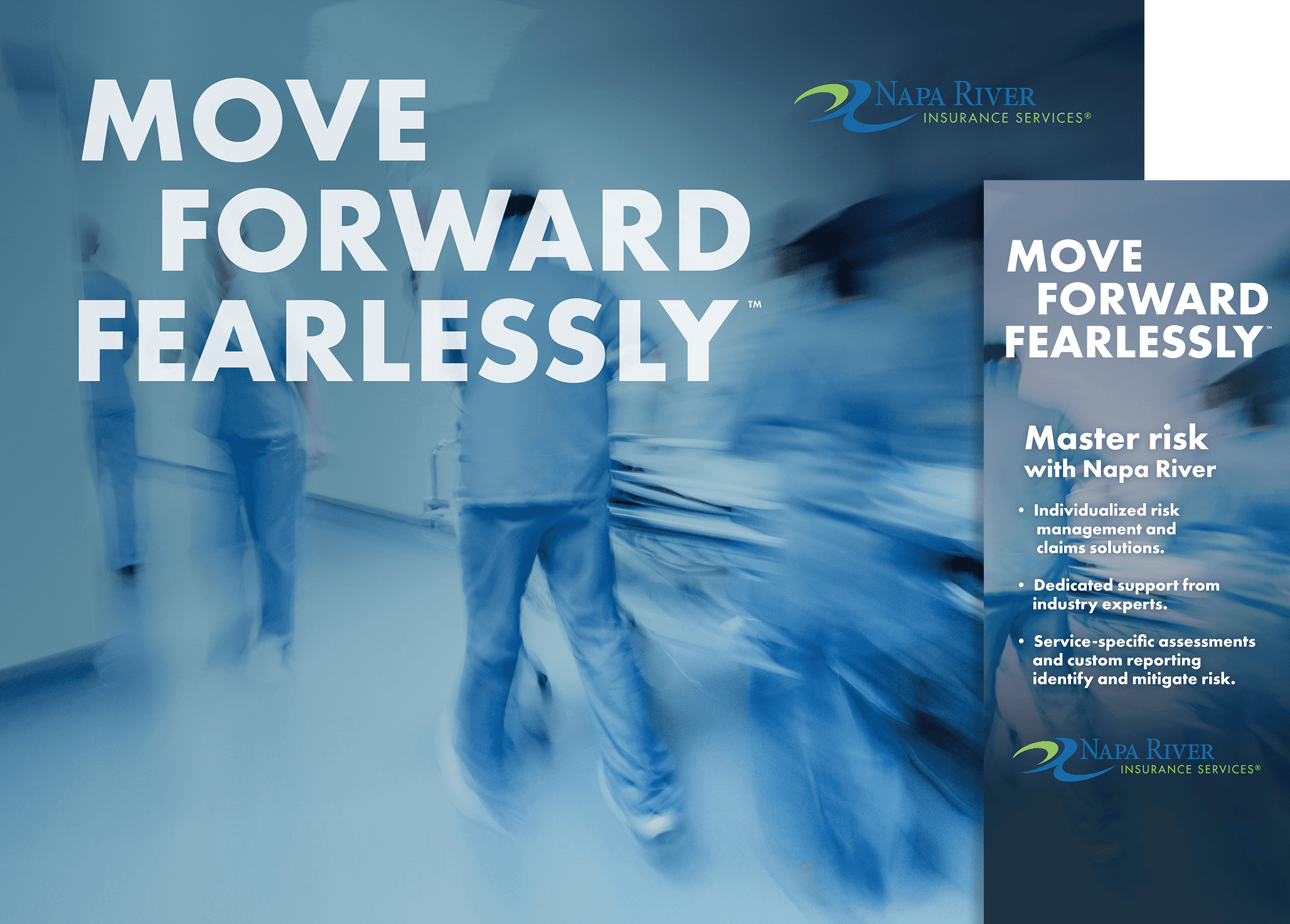 The ad campaign was designed to put the viewer in situations where accidents happen. Instead of using cliché photography of people shaking hands, we put the viewer in the driver’s seat, the emergency room, and in the moment, amplified by a motion blur. Napa River enables the audience to move forward fearlessly past this stressful moment and stay focused on their goals even when accidents happen.