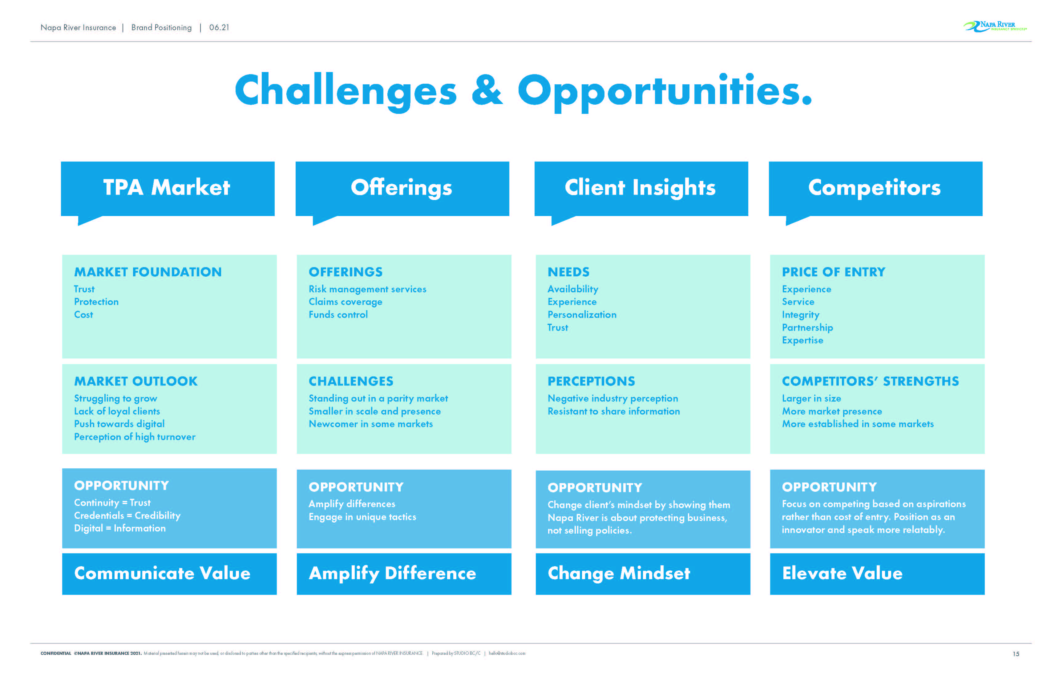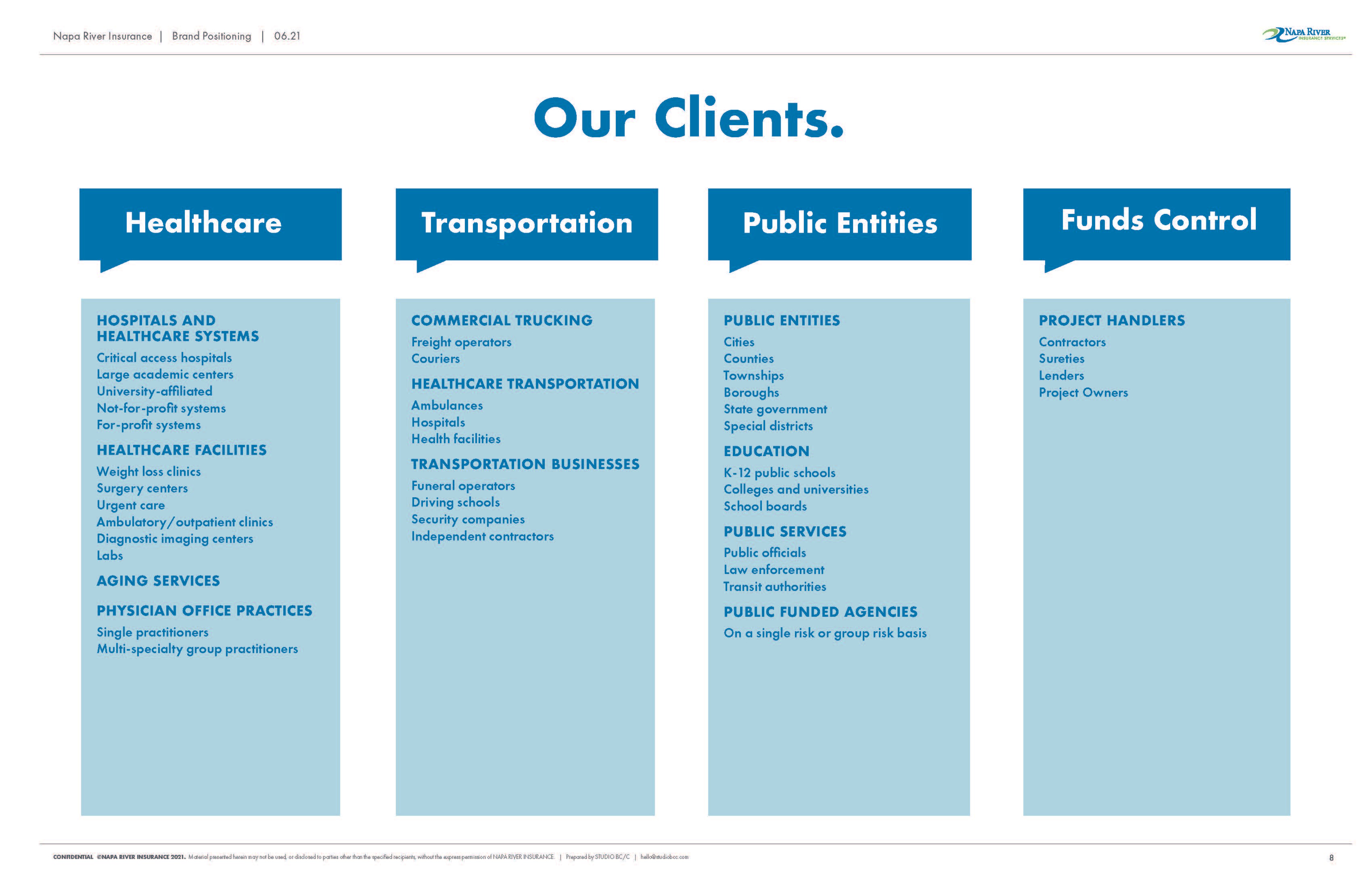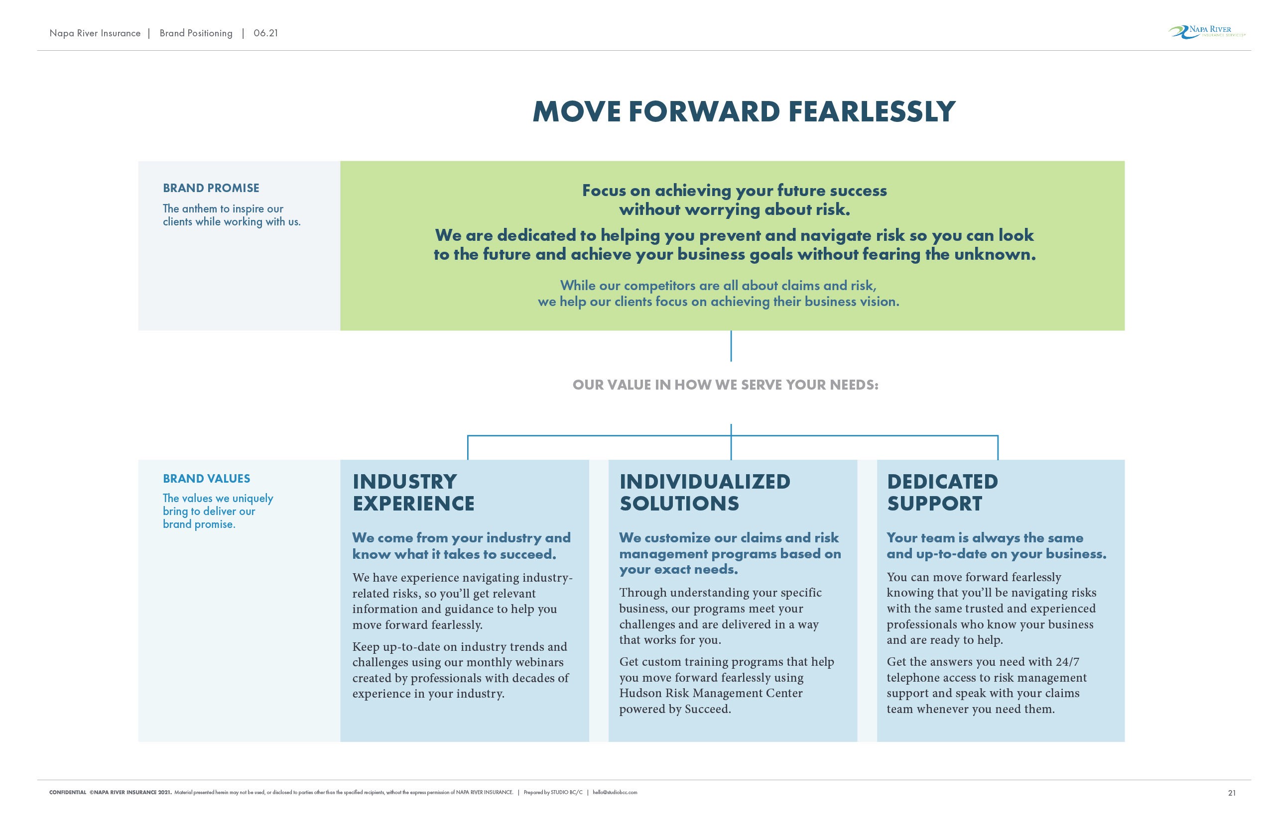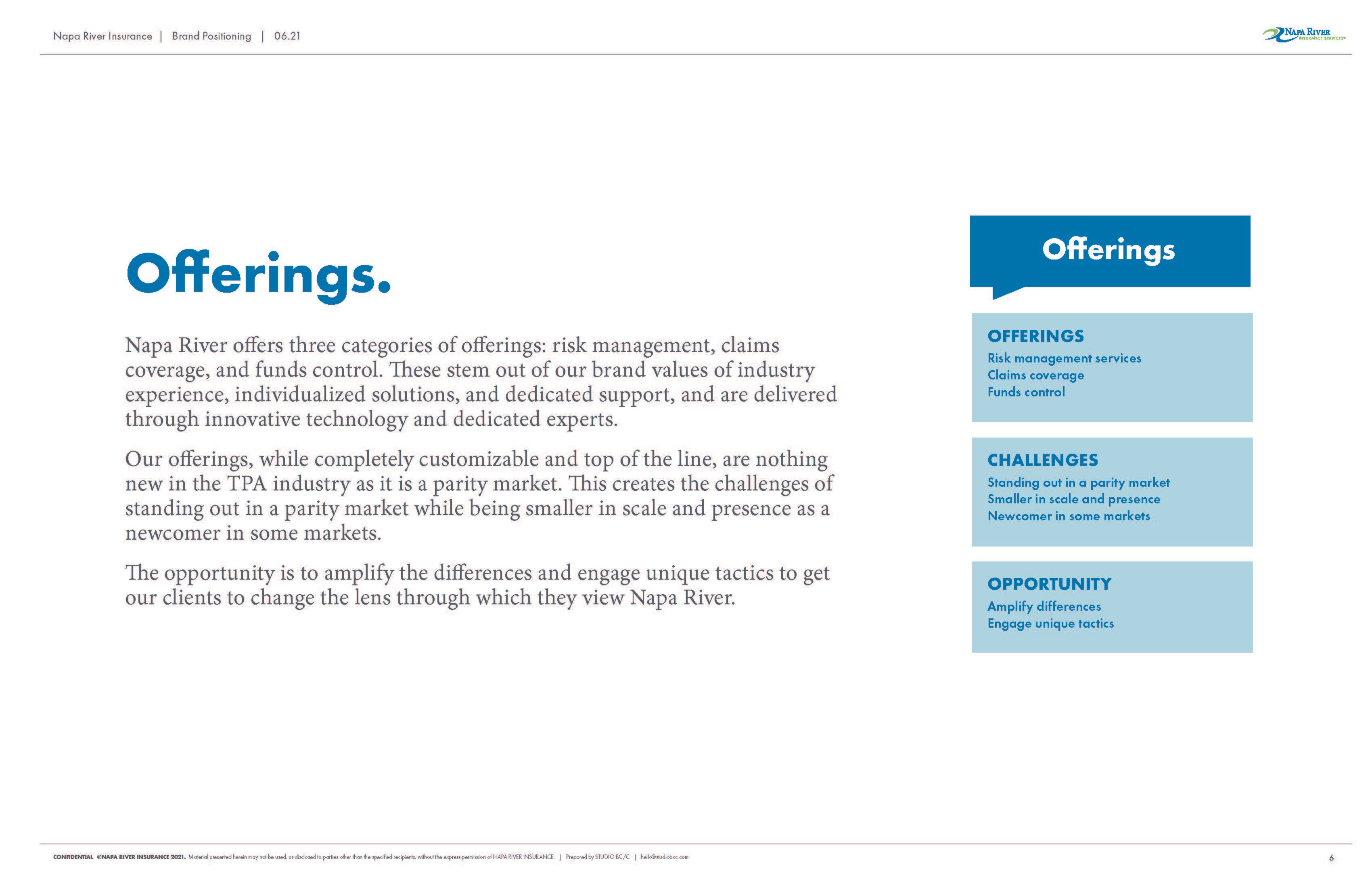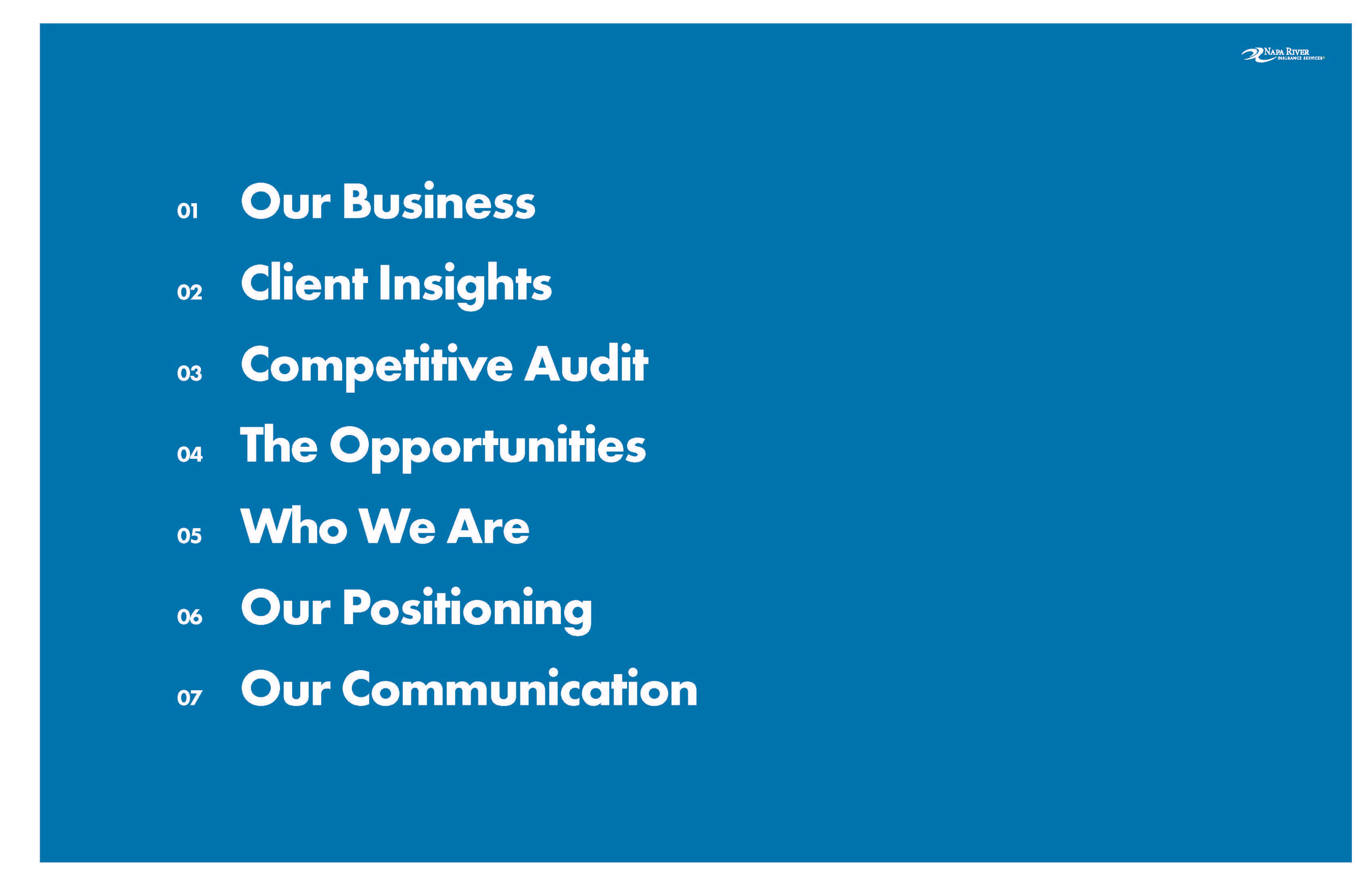 Napa River Insurance is a risk and claims management firm that helps clients move beyond claims and towards their business goals. By aligning the business strategy, position, and design to directly address their clients’ needs, Napa River becomes the market leader on risk and education.