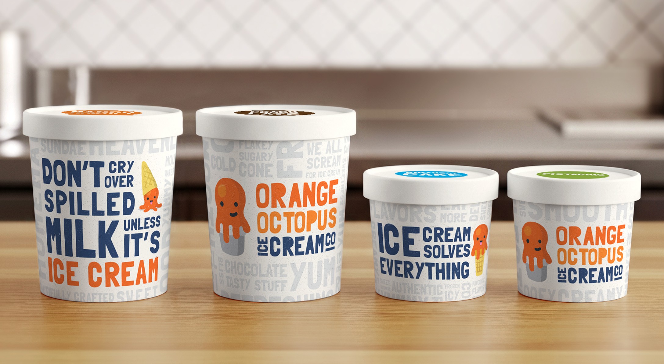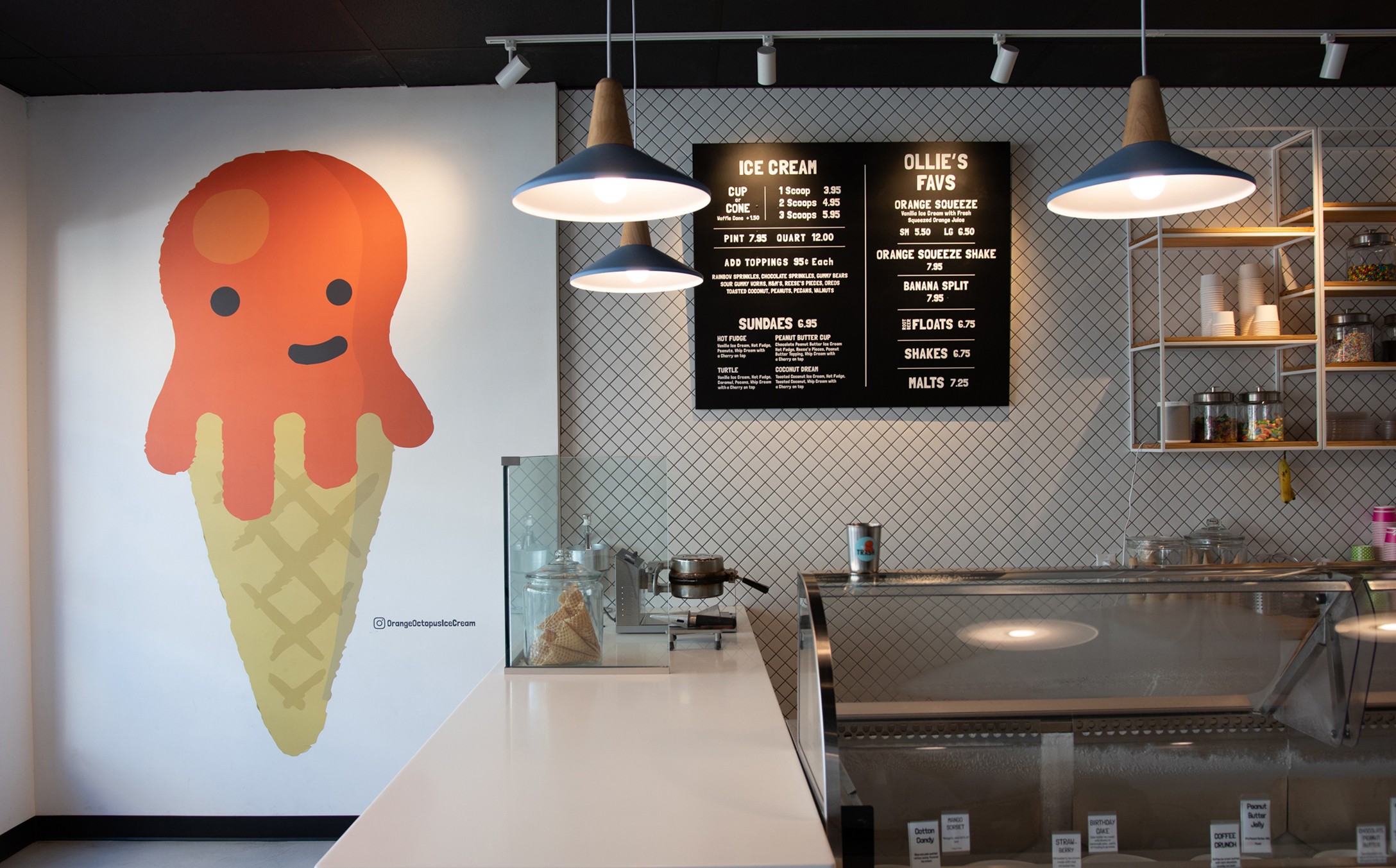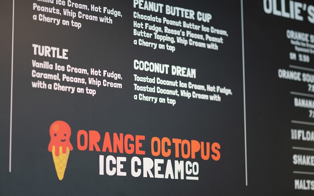 The Orange Octopus rebrand literally brings the joy of ice cream to life with a new mascot: Ollie the orange scoop octopus. A colorful palette, playful typography, and cheerful "ice-cream-isms" wrap the customer experience with happy, good time vibes.
